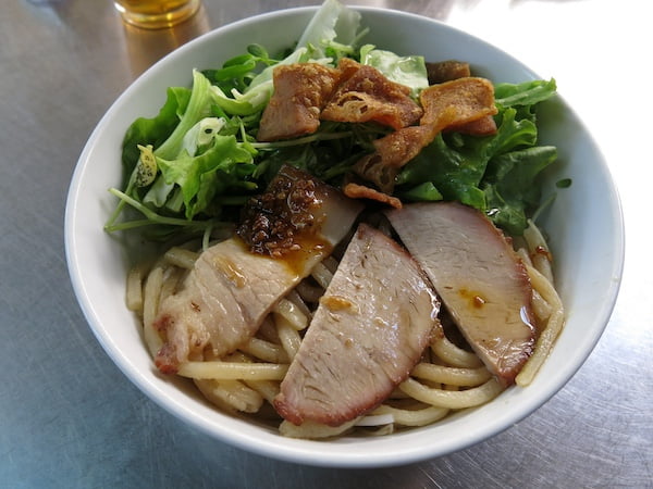 日本の伊勢うどんが起源とも言われる(諸説あり)ホイアンの名物料理。米麺だがフォーのように平らではなく、太く丸い断面のため確かにうどんに似ています。ただしたれの味付けはベトナム式。焼き豚や野菜をトッピングしていただきます。