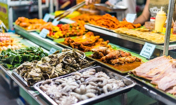 「きしめん」に似た米の麺料理。鶏から取った少量の濃厚なスープと米麺を混ぜ、野菜や肉、ピーナッツをトッピングします。濃厚ながら不思議と飲んだ後や朝食にぴったりで癖になります。