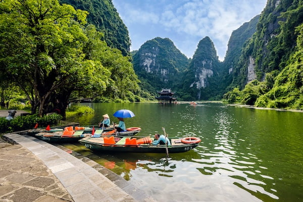 陸のハロン湾と呼ばれる場所は実はベトナム国内の北部にいくつか存在します。ハノイから100kmほどの場所にある「世界遺産タムコック」もその一つ。切り立った石灰岩の峰はハロン湾に勝るとも劣らない景観で、田園風景も望めます。こちらはクルーズでなく川下りで景観を楽しみます。