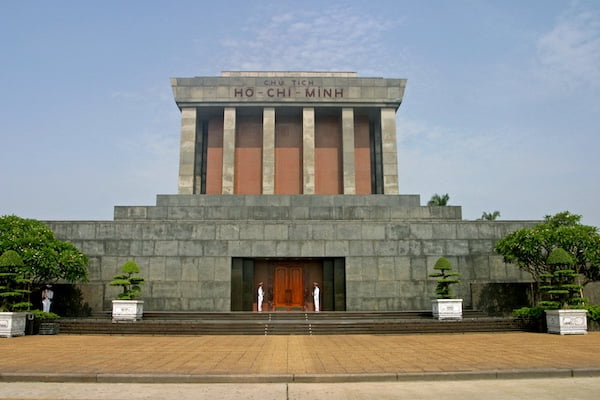 ハノイ駅から車で10分ほどの場所にあるホーチミン廟は、ベトナム革命を指導した建国の父ホー・チ・ミン氏の霊廟。館内には腐敗しないように処置されたホー・チ・ミン氏の遺体が安置されています。立ち止まることは厳禁で、歩きながら鑑賞することになります。