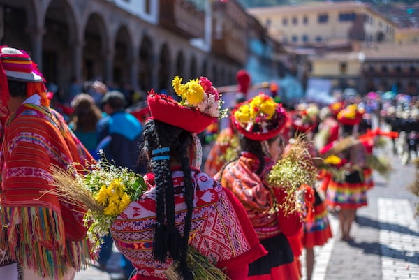 毎年6月24日にインカ帝国の首都だったペルーのクスコで行われる南米三大祭の1つ。太陽の祭りを意味するインティ・ライミはカトリック以外の信仰が禁止されていたスペイン統治時代に開催できず、400年の時を経て1944年に蘇りました。インカの末裔である各部族が色鮮やかな衣装に身を包み太鼓と笛の軽快な音楽に合わせて踊りながらパレードを行います。まるでインカ時代にタイムスリップしたかのような古の世界をたっぷり体感できるお祭りです。