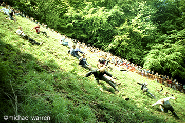 丘の上から転がしたチーズを競技参加者がいっせいに丘を駆け下りながら追いかける単純明快なレース!しかしチーズも転がり人も転がる、しばしば怪我人も出るかなり危険なレース。最も勇気ある勝者を目指して、大人も子供も走り抜けろ!