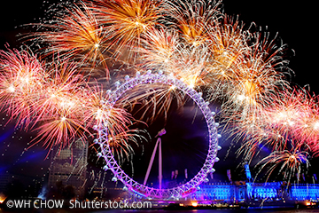 毎年多くの人で賑わうロンドンのテムズ川沿い、ロンドンアイ付近で行われるカウントダウンイベント。ビッグベンによる除夜の鐘は貴重な体験。