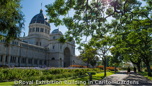メルボルンっ子から愛されているカールトン庭園は、ピクニック・バーベキュースポットとしても人気がある。庭園内のロイヤルエキシビションビルディングはメルボルン万博のために建てられ、1901年にはオーストラリアの建国が宣言され、2004年には「王立展示館」と共にユネスコ世界文化遺産として登録されました。