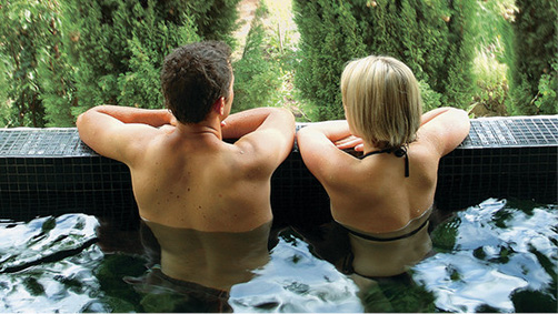 ミネラル分豊富な天然温泉。露天風呂やマッサージなどができるスパ施設もある。温泉は外国なので水着着用です。