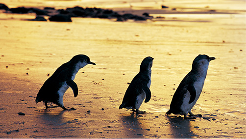 昼間海にいたペンギンが夜になると浜にある巣に戻ってくる様子を見学。だいたい1時間程度、次から次へとペンギンが海から現われます。小さなペンギンがヨチヨチと浜に上がってくる様子が愛らしい。
