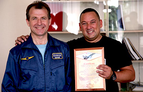 フライト後パイロットと記念撮影&フライト修了証をプレゼント