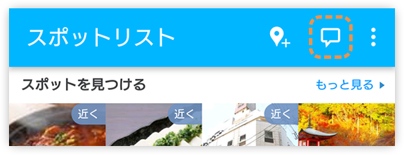 スポットリストを起動し、上部のフキダシボタンからご確認できます。
