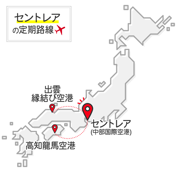 中部エリアの空の玄関口として、国際線・国内線の充実した航空ネットワークを誇る「セントレア(中部国際空港)」。2023年3⽉26⽇(⽇)に、FDAとして初のセントレア発着の定期路線として1日2往復、高知便の運航を開始します。セントレアへは、名古屋から電車(ミュースカイ)で約29分。アクセスが便利な愛知県西三河・知多地域や三重県方面からも高知への移動がぐっと身近に。