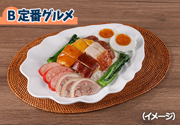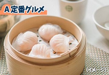 • 手軽に伝統の味を堪能!香港の人気ローカルチェ ーン「太興(タイ・ヒン)」で名物料理をお楽しみください。 メニュー例:①香港式ロースト肉、八宝飯(ローストグース、チャーシュー、仔豚のロースト、蒸し鶏、醤油炊きの鶏、豚足、 中華ソーセージ、塩漬けアヒルの卵)②茹で野菜③氷漬け香港式アイスミルクティー