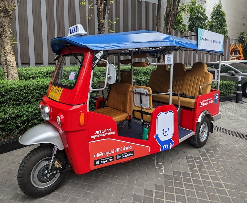 タイでポピュラーなレトロな乗り物「トゥクトゥク(三輪自動車)」にEV(電気自動車)が登場。環境にも優しく乗り心地も快適なトゥクトゥクでフォトジェニックなバンコクの街並みをご案内します。