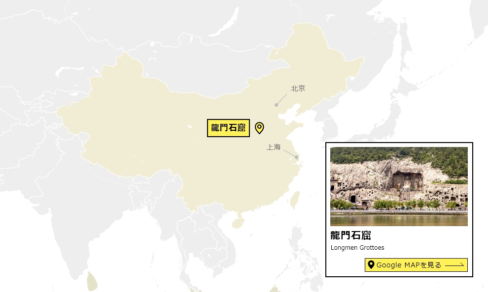中国の河南省・洛陽にある世界遺産・龍門石窟は、中国では長江の次に長い「黄河」の支流、伊河のほとりにある。石壁に彫られた大小10万体もの仏像は、河の両岸に1kmにも渡り並んでおり、圧巻の景色。「雲崗石窟」「莫高窟」とならんで、中国三大石窟と言われている中国の造形芸術だ。