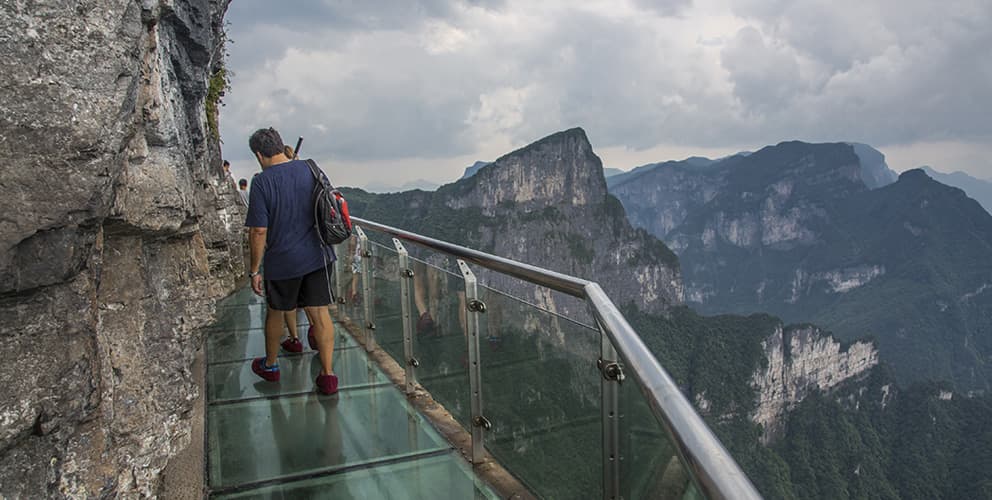 総面積は約264km²にも及ぶ武陵源ですが、標高1200mの黄石寨(こうせきさい)山頂へはロープウェイが整備されており、映画「アバター」のモデルとなった絶景を気軽に見に行くことができます。また大峡谷のガラス橋は名前の通り底がガラス張りの橋であり、高さと絶景を味わうことができます。