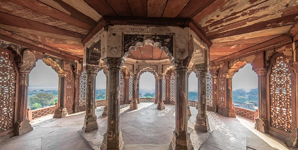 タージ・マハル、ファテープル・シークリーとともにアグラの3つの世界遺産の一つ「アーグラ城塞」。そのほかの2つと併せて訪れることで、ムガル帝国の歴史がより深く理解できると思います。広い城内の中でも一番の見どころは「囚われの塔」。第5代皇帝のジャハーンが息子によって幽閉され、亡くなるまでの8年間を過ごしたとされる場所です。ここからは、若くして亡くなったジャハーンの妻、ムムターズ・マハルが眠る「タージ・ハマル」の姿をはっきりと見ることができます。少し切ない気持ちになるかもしれません…