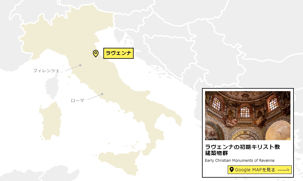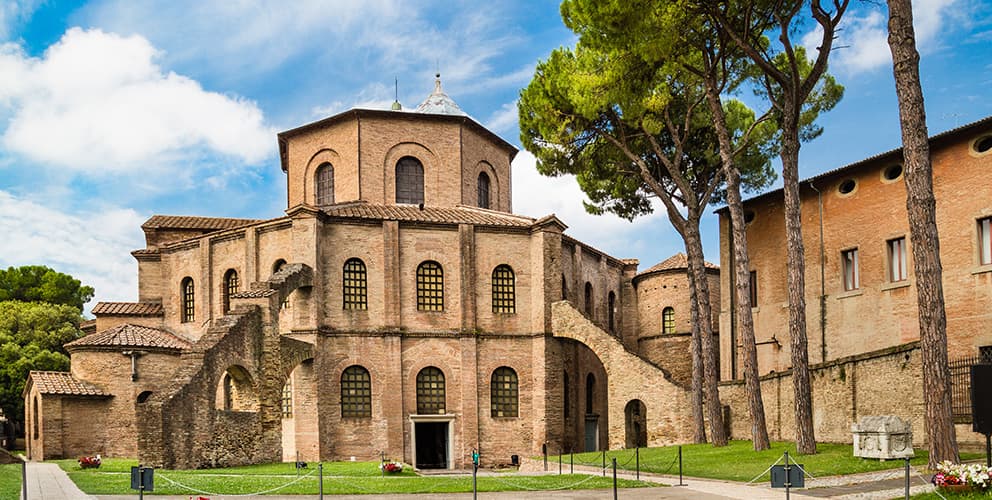 西ローマ帝国の首都であり、ビザンチン帝国の主要都市として栄えた歴史をもつラヴェンナ。5世紀から6世紀にかけて建てられた初期キリストの聖堂・礼拝堂や今もなお数多くのモザイク画が残る芸術の宝庫である。