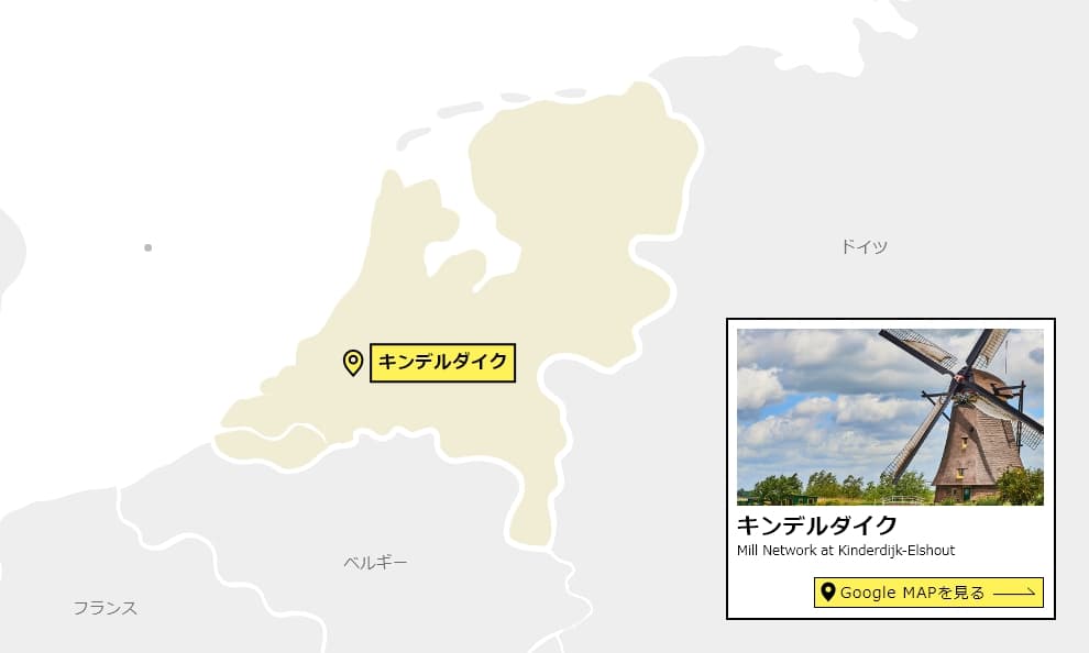 見どころはその大自然に点在する巨大な風車群。風車の合間を通る川をクルーズしながら、風車のある風景を楽しむことができます。日本では見ることのない大地と風車の景色は圧巻。風車の内部を見学することもできます。そのかわいらしい外観とは裏腹に、中に納まる無骨な歯車とギアからは力強さを感じます。9月にはライトアップされるため、さらに美しい景色が見られるでしょう。