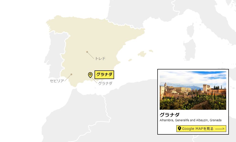 スペイン南部・アンダルシアに位置するグラナダは、約1300年前~500年前までこの地を支配していたイスラム王朝のさまざまな建築物の複合体。現在の形に大きく拡張されたのは、最後のイスラム王朝、ナスル朝が支配していた13世紀~15世紀。シンプルな外観からは想像もつかないほど、宮殿内は華麗なイスラム様式の装飾に彩られている。 夏の住まいとして建てられたヘネラリーフェ離宮は、庭園の花と噴水が清らかな時間を演出。そしてグラナダ最古の街、アルバイシンは、アラブ人が居住していた当時の面影をそのままに残している。