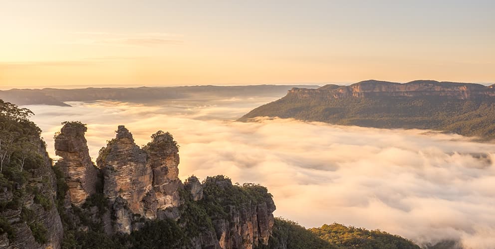 シドニーから日帰り観光で行け、オーストラリアの雄大な景色を堪能できるおすすめのスポットです。 広大なユーカリの森が広がる中、スリーシスターズと呼ばれる3本の突き出た岩が特徴的です。 またトロッコ電車(レールウェイ)や空中ケーブル(スカイウェイ)などの乗り物からも絶景を楽しめます。 近くには、ブッシュウォーキングを楽しめるトレッキングルートが数多くあり、自分の足でオーストラリアの自然を楽しむのもおすすめです。
