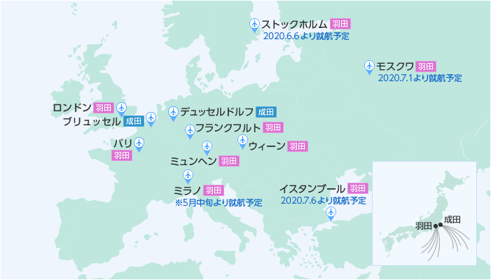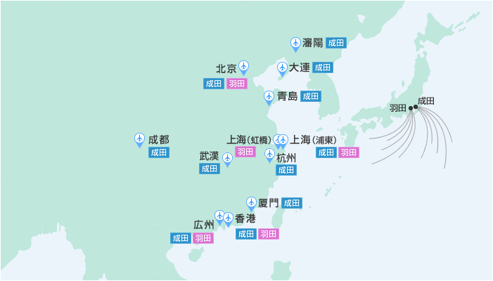 - ※コードシェア便は除く。2014年3月30日以降の就航路線です。