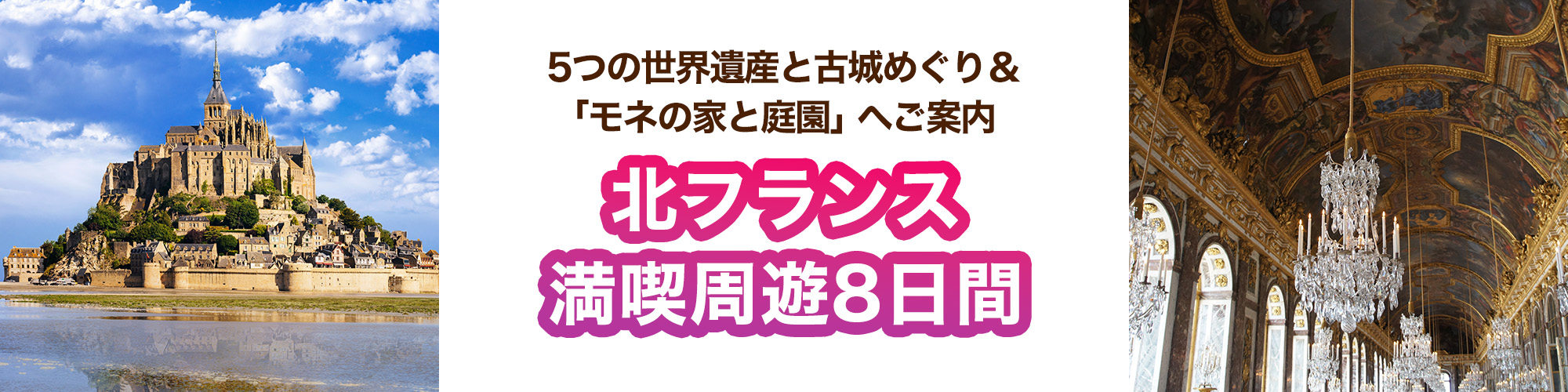 街歩きが楽しい人気観光地パリ、フランスに行くなら必見のモン・サン・ミッシェルに加え、ルイ14世が贅を尽くした絢爛豪華なヴェルサイユ宮殿、多くの古城が残るロワール渓谷古城群、青いステンドグラスで有名なシャルトル大聖堂、モネが晩年を過ごした「ジベルニー」、華の都パリでは、世界遺産セーヌ河岸や凱旋門、シャンゼリゼ通りなどの人気スポットを巡る観光へご案内します。