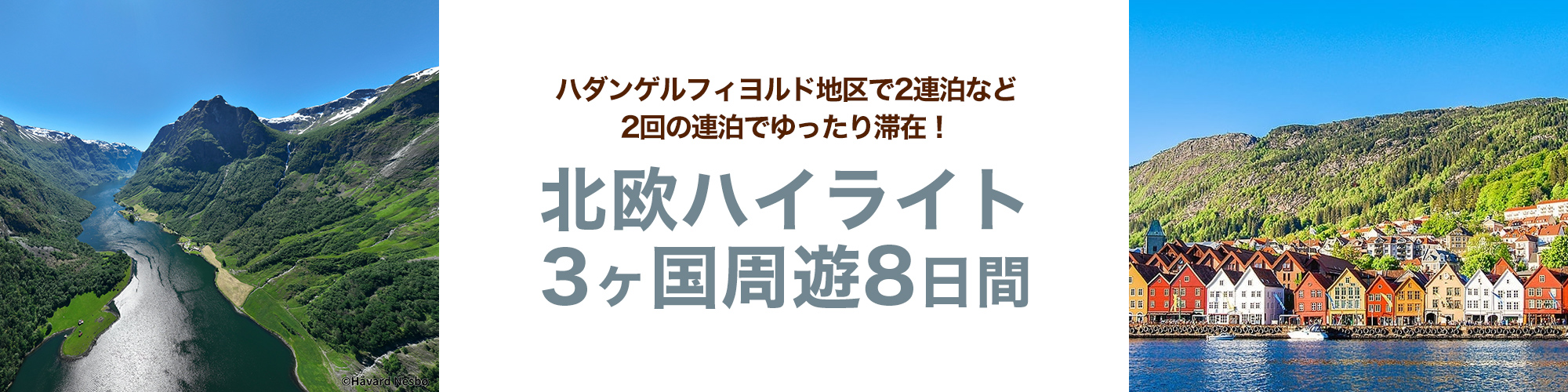 北欧のコースは連泊がないコースが多い中、2都市で2連泊するゆとりの行程でご案内。ハダンゲルフィヨルド地区ではフィヨルドに面して建つホテル「ブラカネス」のフィヨルド側のお部屋に2連泊します。フィヨルドの景観はもちろん、庭園やフィヨルド沿いの朝夕の散策をお楽しみください。ストックホルムでは公共交通機関まで約800m以内のスーペリアクラスホテルをご用意します。