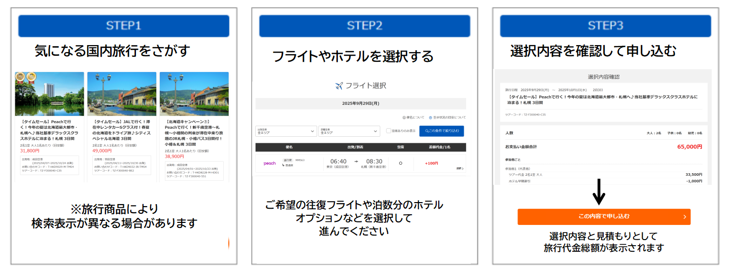 対象商品: HIS主催国内パッケージツアー、ダイナミックパッケージ(航空券+ホテル)、添乗員同行ツアー(飛行機利用・鉄道利用)、国内クルーズ、国内ホテル、バスツアー