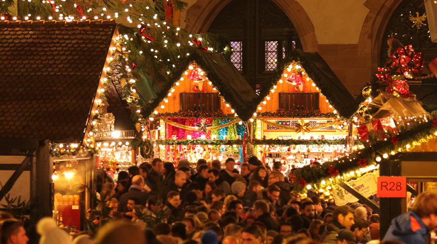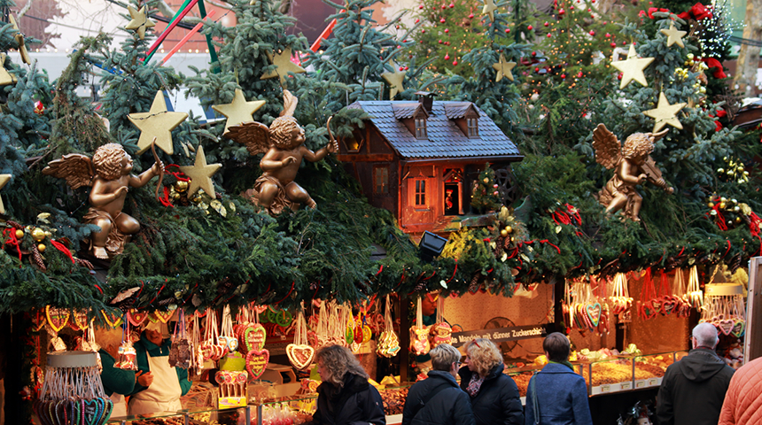 アドヴェント(待降節)とよばれるクリスマス前の4週間の準備期間にドイツを始めヨーロッパ各国、各都市で開催されるものです。マーケットはそれぞれ雰囲気も異なりクリスマスに向けた飾りなどでオーナメント、キャンドル、手工芸品、またソーセージ、グルメ、お菓子、温かいグリューワイン(ホットワイン)などを売る屋台が多く並びます。寒い季節に心も身体も温まるまるで縁日さながらの冬の風物詩を是非お楽しみください。