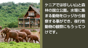 ケニアはもともと欧米富裕層に観光開発されてきただけに、宿泊施設のレベルが高いのが特徴的です。