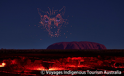 先住民アナング族の言葉で「広い地平線を見渡す美しい景色」を意味するウィンジリ ウィル。小型ドローンを用いた音と光のショーで、アナング族に伝わる古い物語を砂漠の夜空一面に描き出します。構想から約4年もの歳月をかけて作り上げられた芸術ショーは、アナング族の文化に敬意を表し環境にも配慮されています。