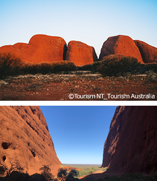 先住民アボリジナルの言葉で「ウルル」と呼ばれるエアーズロック、「カタジュタ」と呼ばれるマウントオルガ。