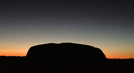 ウルル周辺は晴天率が高く、オーストラリア有数の天体観測地となっています。天候が良ければ、夜空を見上げると地平線から地平線まで弧を描く天の川や、まばゆいばかりに輝く星たちが手に取るように見えます。