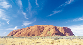この2つの岩をはじめ雄大な自然が広がる国立公園。先住民アボリジナルが「聖地」と尊ぶこの地で、感動的な自然体験を。-