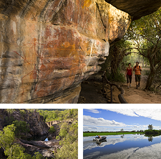 日本の四国と面積がほぼ同じ、オーストラリア最大の国立公園。貴重な先住民アボリジナルの岩壁画があり、美しい湿原や森には、1500種の植物、280種の鳥類、120種の爬虫類、50種の哺乳類、30種の両生類、80種の淡水魚、1万種の昆虫が確認されており、壮大な自然とアボリジニ文化が共存したまさに自然の楽園です。