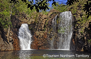 ダーウィンからわずか2時間で到着するリッチフィールド国立公園。白アリたちが建てた高さ2メートルを超す大きさのアリ塚群や先住民アボリジナルのパワースポットでもある滝があります。滝壺では泳ぐことができます。