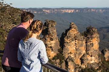 世界自然遺産のブルー・マウンテンズはシドニーから車で90分。その名前は広大なユーカリの森が創り出す天然の青い靄(もや)に由来し、自然が育む神秘の奇景は思わず息をのむ美しさ。3人姉妹の伝説で 知られるスリー・シスターズの岩石層を眺められるエコー・ポイント展望台からは素晴らしい大自然の景色が楽しめます。シーニック・ワールドでは、世界一急勾配の斜面を走るトロッコ列車のシーニックレイルウェイが体験でき、またブルー・マウンテンズにある宿泊施設に滞在すれば夜は南半球の満天の星空観察ができます。