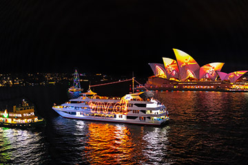 光と⾳楽と⾷とアイデアの祭典、ビビッド・シドニーを船上で楽しむクルーズツアーです。色とりどりに輝くシドニーの夜景を、混雑を避け船上から優雅にお楽しみください。 バランガル―やサーキュラキー等の主要なライトアップエリアを巡ります。