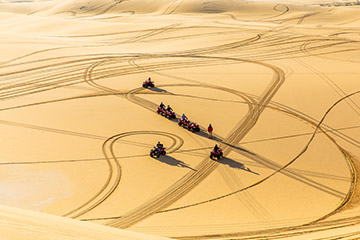ポート・スティーブンスはシドニーから車で約3時間。美しい海にはバンドウイルカが生息し1年を通じてドルフィンウォッチングが体験でき、5月から10月にはホエールウォッチングも楽しめます。ユニークな広大な砂丘でのアクティビティも人気。砂丘を駆け抜け4輪バギーでの砂丘ドライブの臨場感はここでしか味わえません。ボードを使って砂丘を滑り降りるサンドボーディングで砂の上を豪快に滑り降りる爽快な体験もできます。地元のオークベール・ワイルドライフ・パークではオーストラリア固有の動物たちにも出会え、コアラの治療と保護を目的とするコアラ・サンクチュアリでは、保護中のコアラを観察できグランピング施設も併設されているので宿泊も楽しめます。