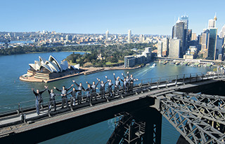 シドニー・ハーバー・ブリッジは、歩道を歩いたり、自転車で渡ったりすることができるほか、眺めるだけでなく、ブリッジクライムツアーに参加して、1300段の階段を一歩一歩踏みしめながら、アーチの頂上から見渡すシドニーの大パノラマを体験いただけます。