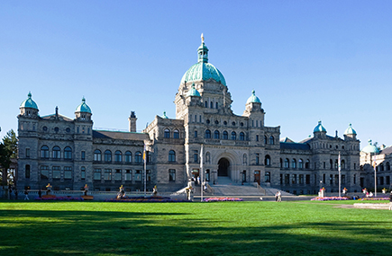 ビクトリアハーバーを見守るように建設されたひときわ目立つ建物がブリティッシュ・コロンビア州の州議事堂です。州議事堂の前には色とりどりの花壇や広い芝生があり、市民の憩いの場になっています。夜はライトアップされその美しさを楽しむ事が出来ます。