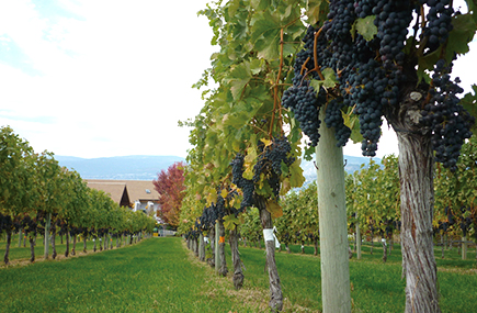 ブドウ畑の中でのワインテイスティングができるのはココだけ!グラスを借りて、ブドウ畑の中を歩きます。オカナガンの大地と風の匂いと共に試飲をお楽しみください。
