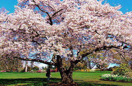 『リトルマウンテン』と呼ばれるこの丘の頂上に広がるクイーンエリザベスパークは市内最初の植物園。丁寧に手入れされた庭園は、季節ごとに色とりどりの花が咲き乱れています。特におすすめなのが4月上旬から楽しめる桜。市内の桜の名所と言えばこの公園が名前をあげられるほど有名です。