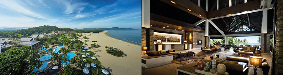 ジャングルとビーチに囲まれたリゾートホテル 美しい南シナ海を望むパンタイダリットビーチに位置する高級リゾートホテル。市内から離れている分、静かで落ち着いた雰囲気。3kmに渡るプライベートビーチなど施設も充実。マリンスポーツ、サイクリングや乗馬などのアクティビティも可能で、リゾートステイ重視の方やお子様連れにもおすすめのホテル。ボスネオの大自然を満喫できる!ゴルフ場も有する広大な敷地の中に建つリゾートホテル。