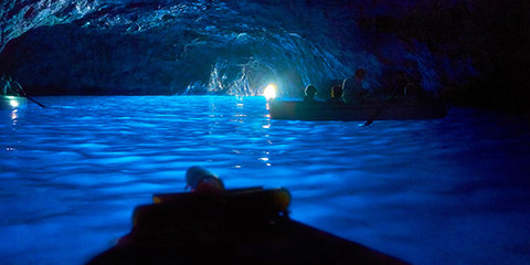 南イタリアの陽光が海底に反射して青く輝く様は、まさに絶景!