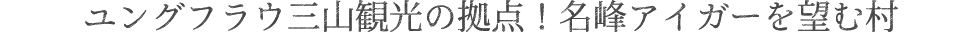 アイガー、メンヒ、ユングフラウを抱くベルナーオーバーラントの三山の観光拠点となっているグリンデルワルト。ユングフラウ鉄道に乗ってヨーロッパで一番標高の高いユングフラウヨッホやフィルスト展望台などの展望台から見るアルプスの大自然の大迫力を感じてください。
