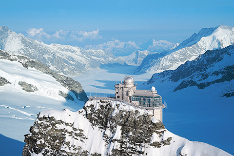 01_標高3,571mにあるスフィンクス展望台。アトラクション等もある観光スポット! 02_グリンデルワルトの駅に着くと名峰が出迎えてくれます。 03_グリンデルワルトからゴンドラに乗って約25分!フィルスト展望台へはこちらから 04_スイスと言ったらチーズ料理!たくさんのレストランがあります!