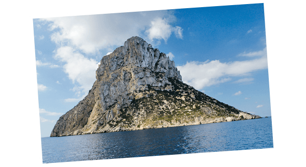 石灰石でできた400メートルの高さを持つエス・ヴェドラ島には、イビサの女神にまつわる伝説などが多数残され、パワースポットとして島民にも愛されています。島へ渡ることはできませんが、タクシーと徒歩で展望台へ行くことができます。