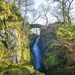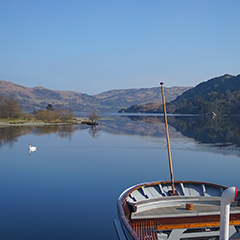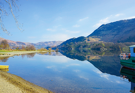 美しい湖水地方とはひと味違った、岩と草の無骨な景色が広がるもう一つの湖水地方。しかし湖畔まで歩いていくと、穏やかで雄大な湖が待っています。汽船で湖上クルーズを楽しむことも可能。またAira Forth(アイラ・フォース)という滝があり、往復1時間位のトレッキングを楽しむこともできます。