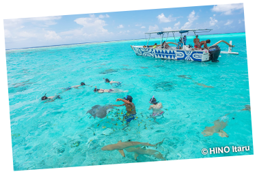 ラグーン内にある魚の集まるモツ周辺でのシュノーケリングツアーが大人気です。
