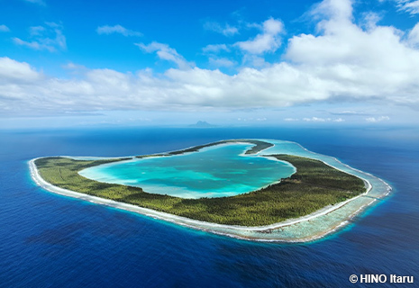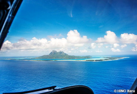 ハートの形をしたロマンティックなラグーンのツパイ島やボラボラ島を上空よりご覧いただけます。