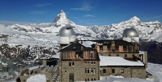 山岳ホテルゴルナーグラートからは、360度4,000m級のアルプスの絶景がご覧頂けます。